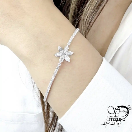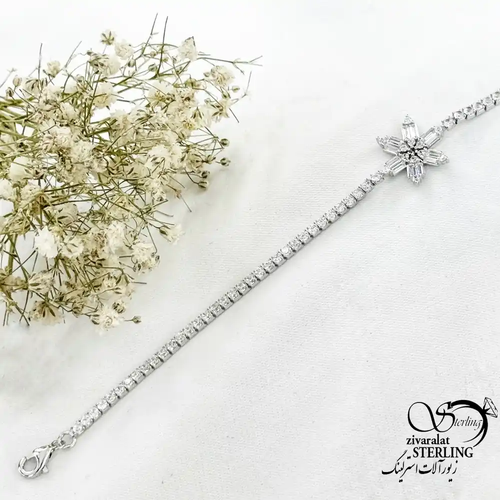 دستبند نقره فول نگین طرح گل ساخت ایتالیا کد 20328