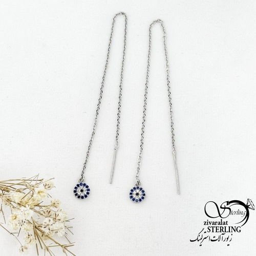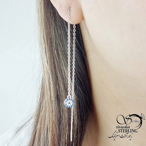 گوشواره نقره بخیه ای آویز چشم نظر کد 18113