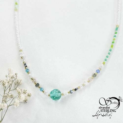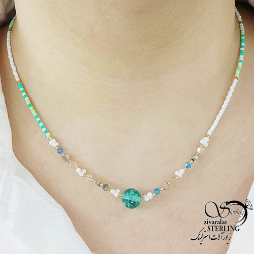 گردنبند فانتزی مروارید رنگی گوی شیشه ای کد 16347