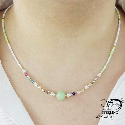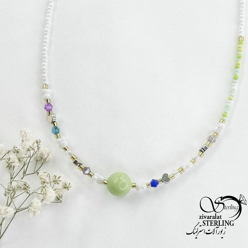 گردنبند فانتزی مروارید رنگی گوی سبز کد 16346