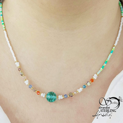 گردنبند فانتزی مروارید رنگی گوی آبی کد 16345