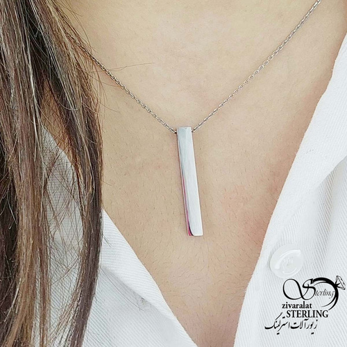 گردنبند استیل سفید مکعب استوانه ای کد 16261