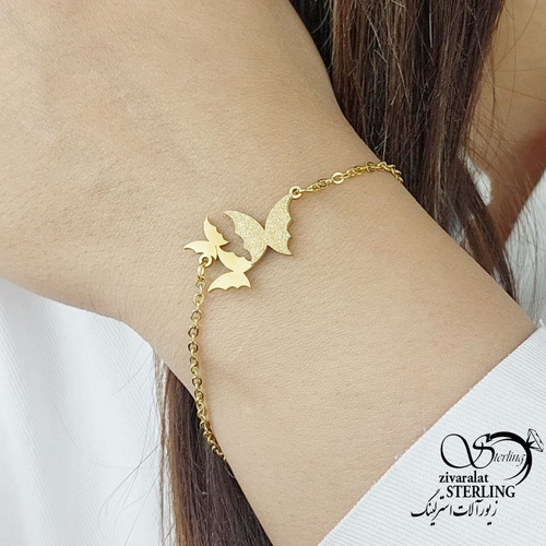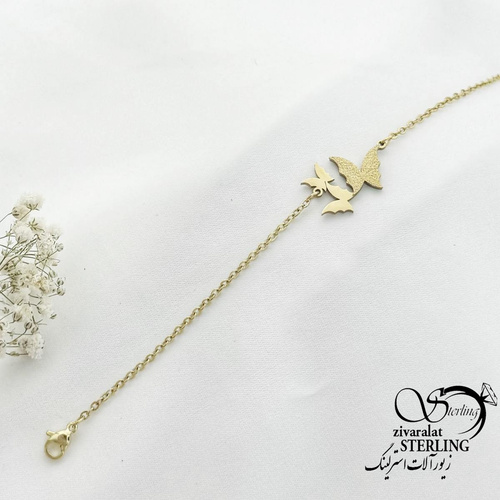 دستبند استیل پروانه سه تایی طرح طلا کد 16133