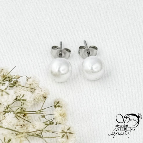گوشواره استیل گوی مرواریدی درشت کد 16195
