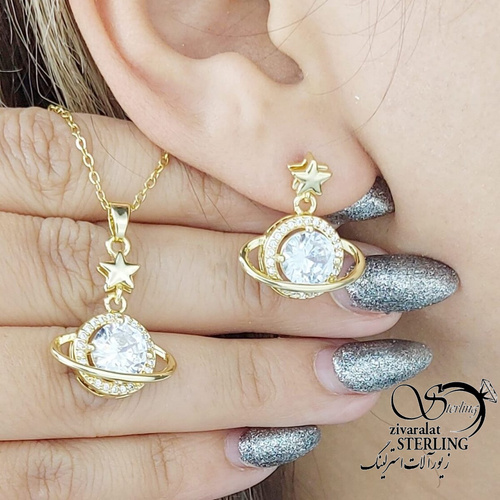 نیمست آویز نگین و ستاره طرح طلا رنگ ثابت کد 15770
