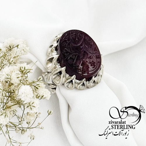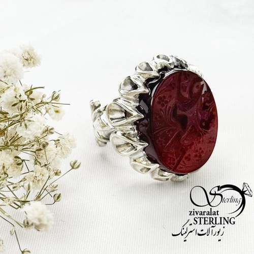 انگشتر نقره ایتالیایی سنگ عقیق ذکر علی کد 16909