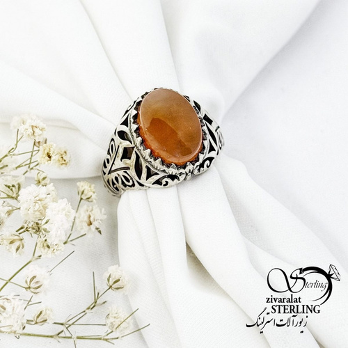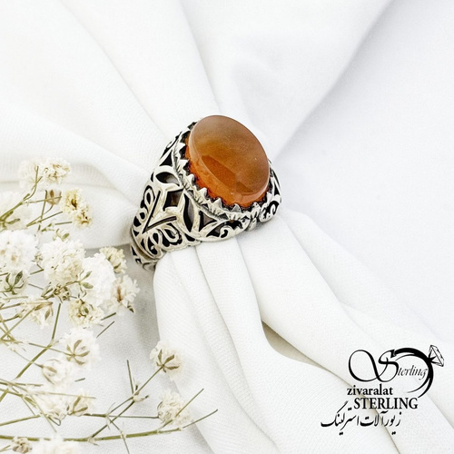انگشتر نقره رکاب شبکه و سنگ عقیق یمن کد 16701