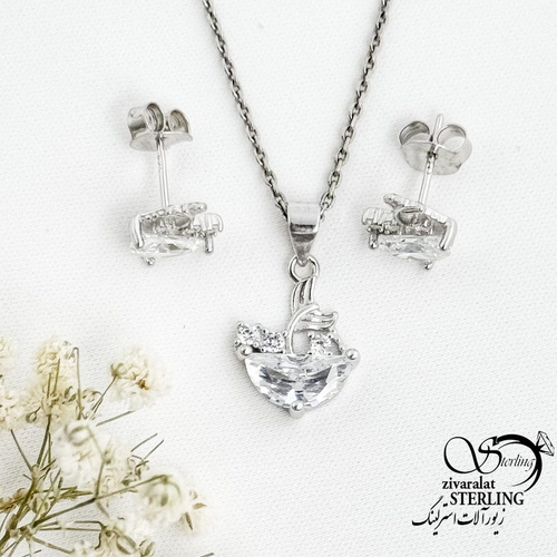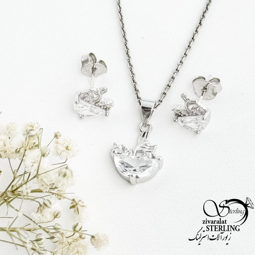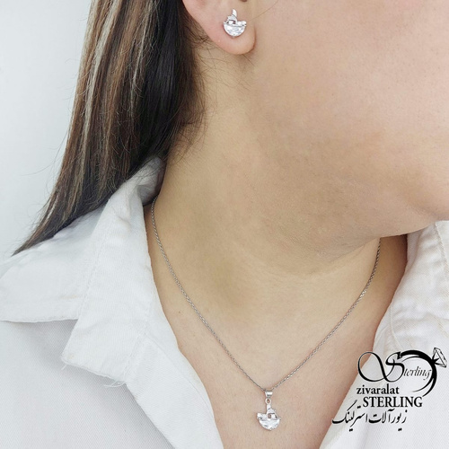 نیم ست نقره نگین جواهری با عیار925 کد 16814