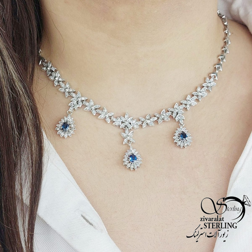 گردنبند زنانه نقره آویز اشکی سنگ یاقوت کبود ساخت ایتالیا کد 16810