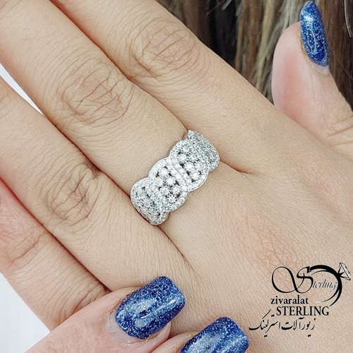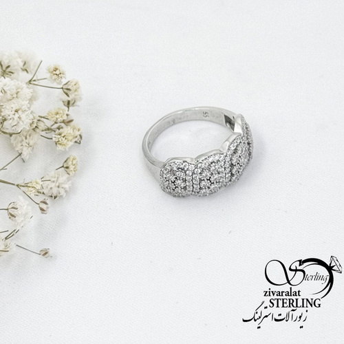 انگشتر نقره 925عیار طرح موجدار فول نگین کد 16551