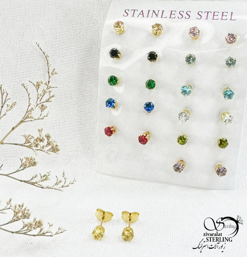 گوشواره استیل نگین طلایی کد 12857
