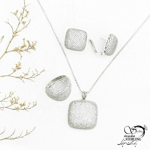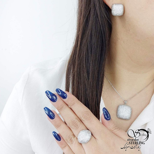 سرویس نقره مربعی فول نگین 925عیار کد 12817