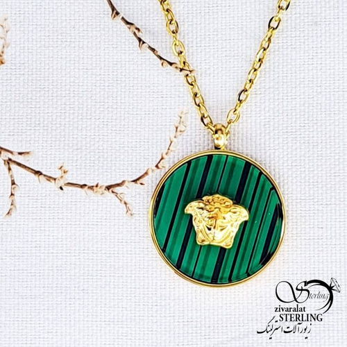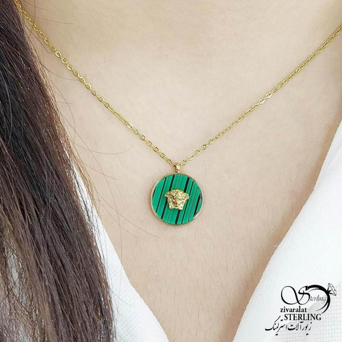 گردنبند استیل با پلاک مدوسا سبز کد 12255
