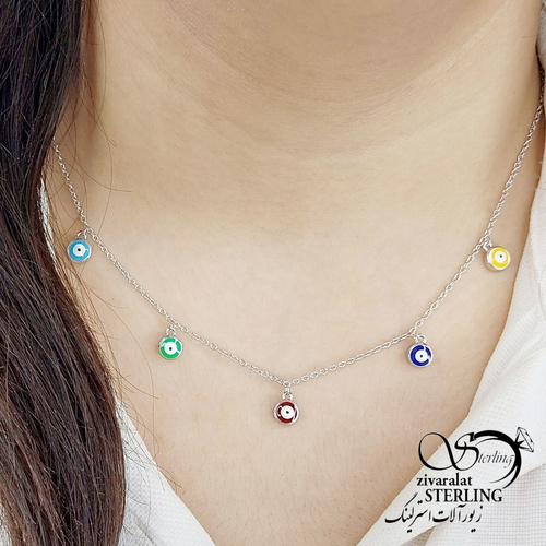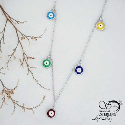 گردنبند آویز چشم نظر رنگی نقره925 کد 11957