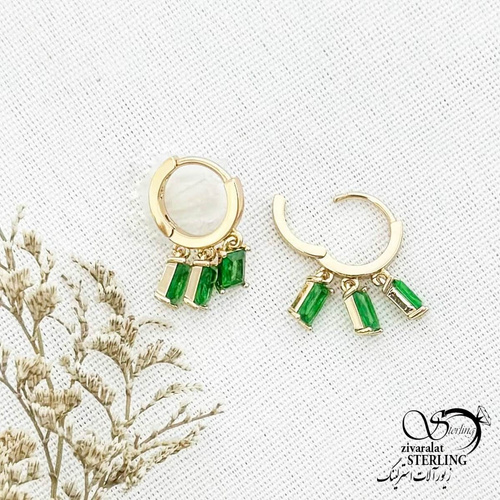 گوشواره حلقه ای آویز نگین دار برند ژوپینگ کد 14305