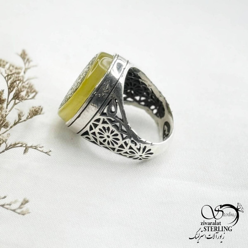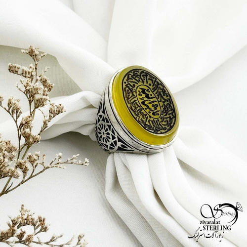 انگشتر مردانه عقیق زرد دستساز رکاب شبکه با ذکر ماشاالله کد 14116