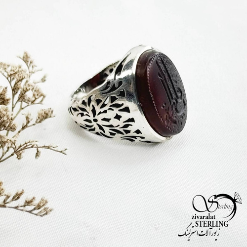 انگشتر نقره عقیق رکاب شبکه ذکر یا فاطمه کد 14065