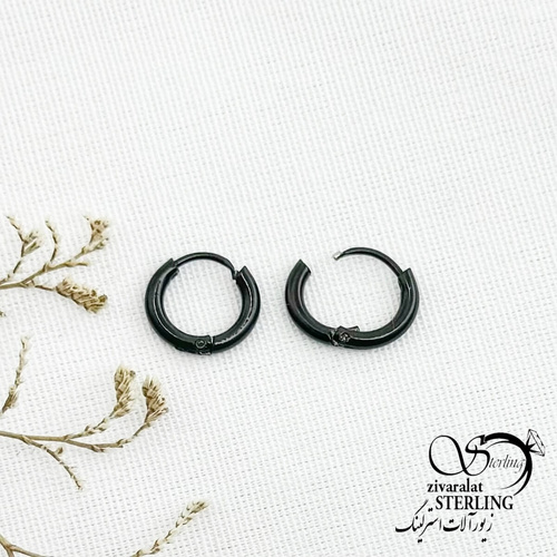 گوشواره استیل حلقه مشکی سایز کوچیک کد 13463