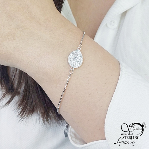 دستبند نقره 925عیار نگین دار طرح اشکی کد 13430