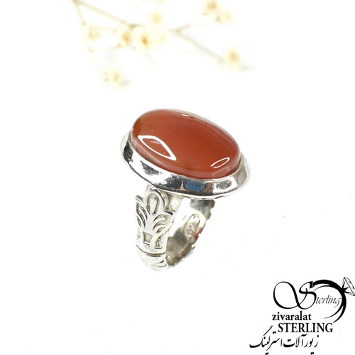 انگشتر سنگ عقیق قرمز رکاب نقره ساخت ایتالیا کد 8660