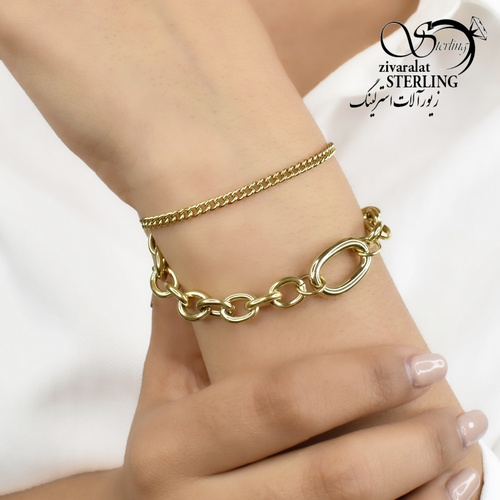 دستبند استیل زنانه دو زنجیره کلاسیک کد 5764