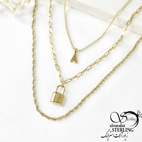 گردنبند زنانه استیل سه لاین با حرف A و قفل کد 5726