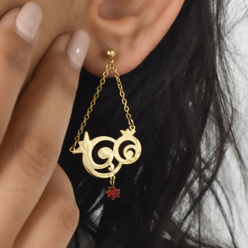 گوشواره استیل یلدایی آویز نگین قرمز کد 5194