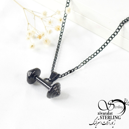 گردنبند دمبل استیل مشکی کد 6810