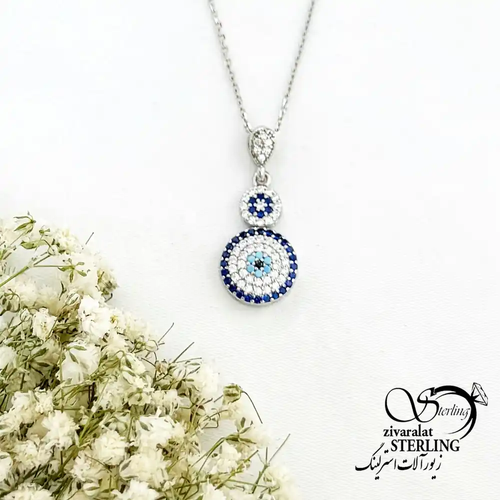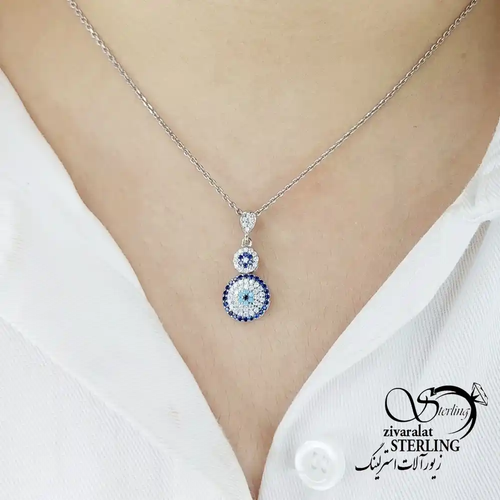 گردنبند نقره آویز چشم نظر ساخت ایتالیا کد 19554