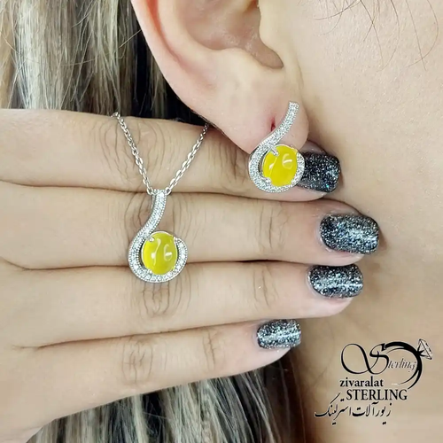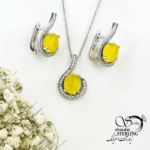 نیمست نقره عقیق زرد عیار925 دور نگین کد 19549