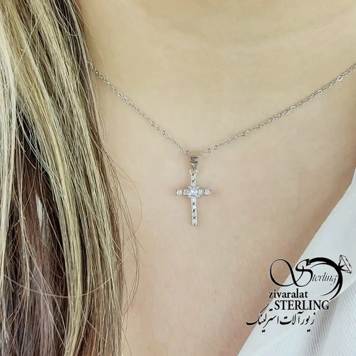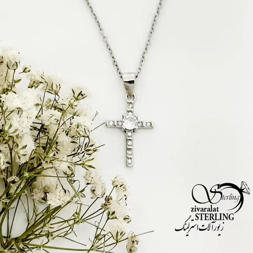 گردنبند نقره آویز صلیب نگین دار کد 19441