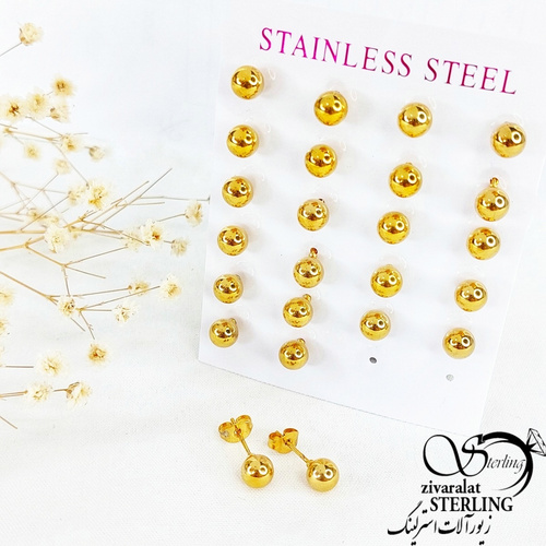گوشواره استیل گوی درشت با روکش طلا کد 10951