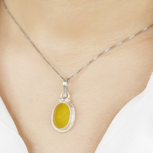 پلاک نقره 925عیار زنانه با نگین عقیق زرد کد 2636