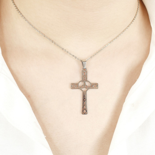 پلاک صلیب قلبی نقره ای استیل کد 8688